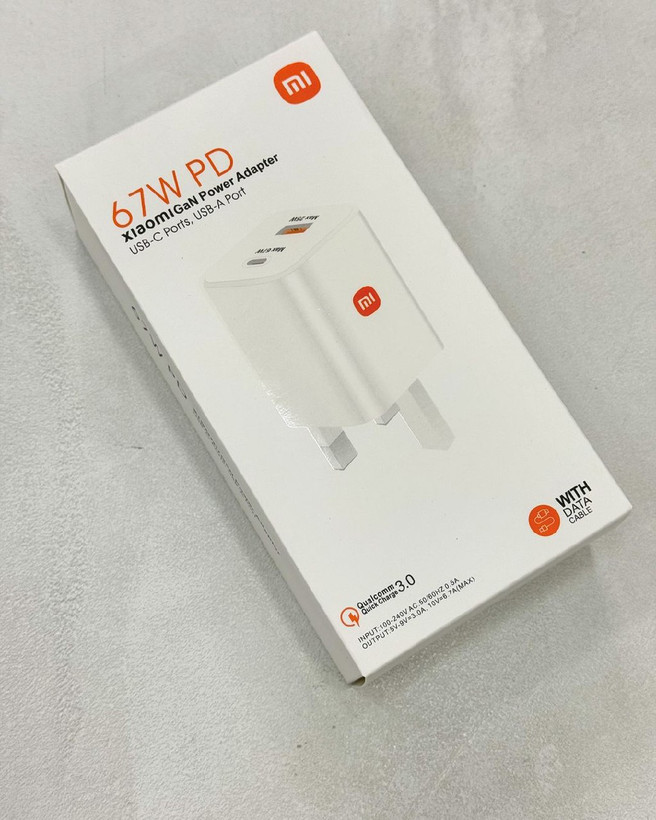 آداپتور فست شارژر دو پورت + کابل تایپ سی شیائومی (Xiaomi) 67W مدل MDY-K50-EF سه پین | دو پورت USB-A و USB-C | کیفیت عالی | فست شارژ | جریان خروجی 67 وات | دارای فناوری Qualcomm 3.0 | به همراه کابل تایپ سی✅