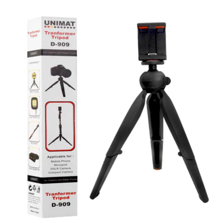 این سه پایه یونیمات دارای یک نگه دارنده جهت نگهداری موبایل و پشتیبانی از گوشی های سایز 6 اینچی و کمتر را داشته و دهانه گیره می