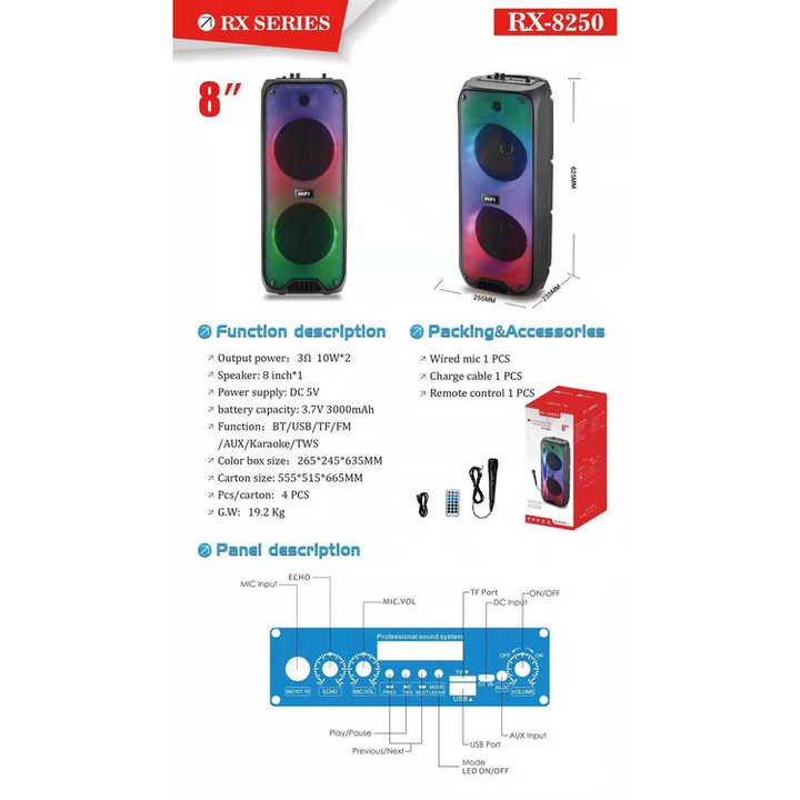 اسپیکر بلوتوثی قابل حمل میکروفون دار مدل RX8250