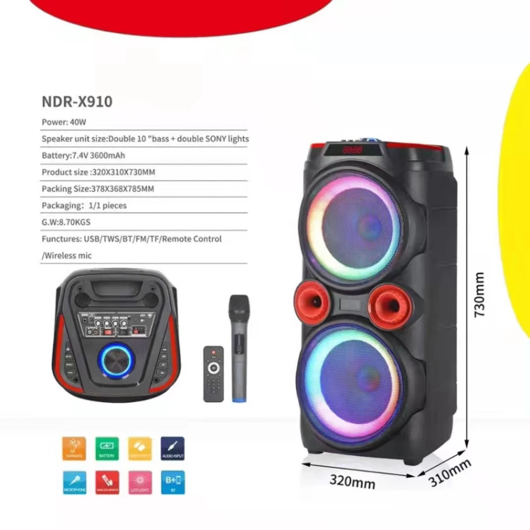 نام محصول: اسپیکر بلوتوثی قابل حمل میکروفون دار مدل NDR X910✅