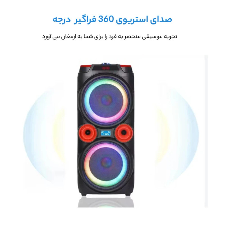 قابلیت های ویژه: قابلیت ضبط صدا خواننده بر روی فلش قابلیت میک پری ( اولویت صدای میکروفون ) مجهز به تکنولوژی TWS ( جفت شدن به یکدیگر ) قابلیت تنظیم افکت صدای خواننده echo/delay مجهز به درگاه یو ای بی شارژ ۵ ولت✅