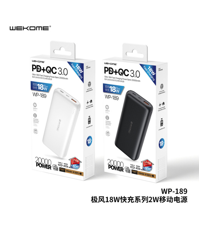 پاوربانک WEKOME مدل WP-189 با ظرفیت 20000 میلی آمپر ساعت