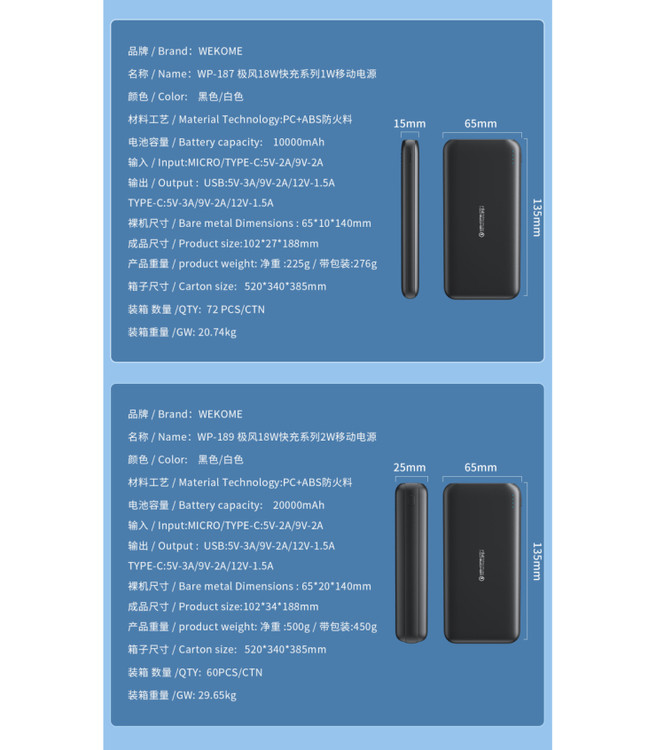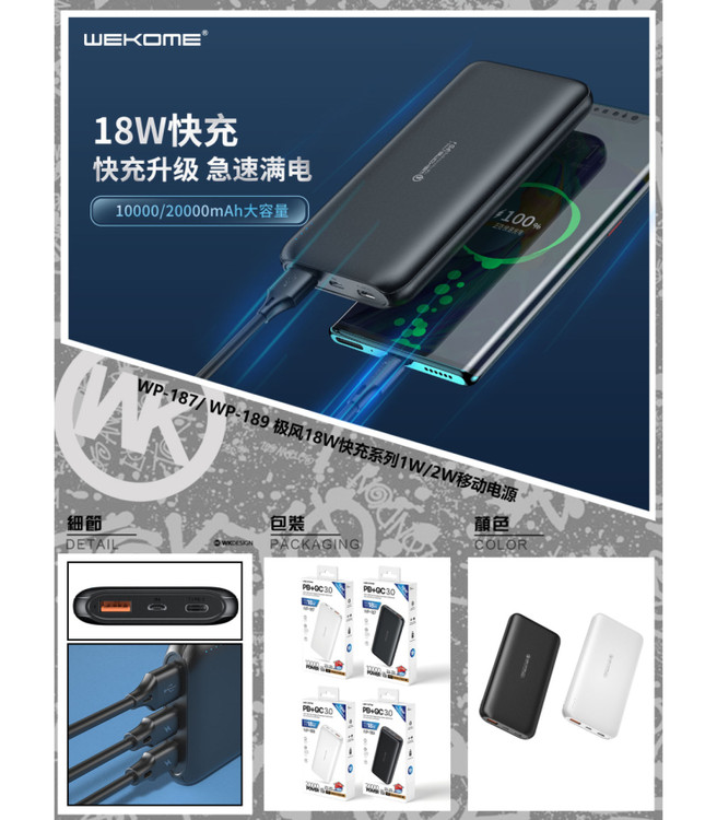 نوع محصول: پاوربانک Wekome مدل WP-189 با ظرفیت 20000 میلی آمپر ساعت✅