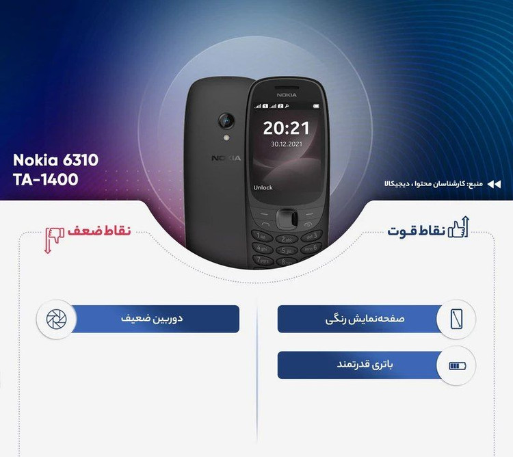 گوشی دکمه ای نوکیا Nokia مدل 6310 دو سیم کارت✅