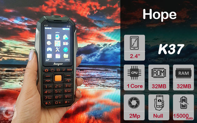 یکی از جدیدترین محصولات شرکت Hope گوشی موبایل ضد ضربه K37 نام دارد. این گوشی از سه سیم کارت و کارت حافظه جانبی پشتیبانی مینماید و برای کوهنوردان و افرادی که دارای مشاغل سخت هستند گزینهی مناسبی است. همچنین از آنتن دهی خوبی برخوردار میباشد✅