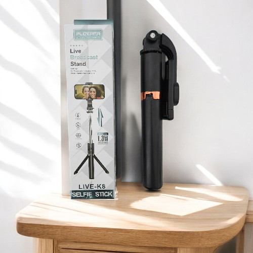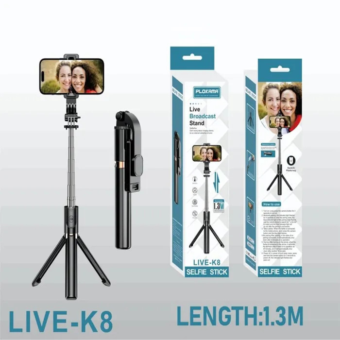تریپاد بلوتوثی و پایه نگهدارنده Plokama مدل Live-K8 (سه پایه فیلم برداری عکاسی همسفر تریپاد)✅