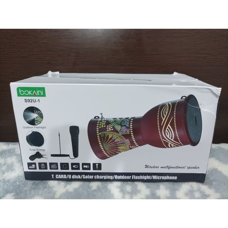 اسپیکر شارژی طرح تنبک دارای پنل خورشیدی مدل S92U-1 برند Bokaini✅