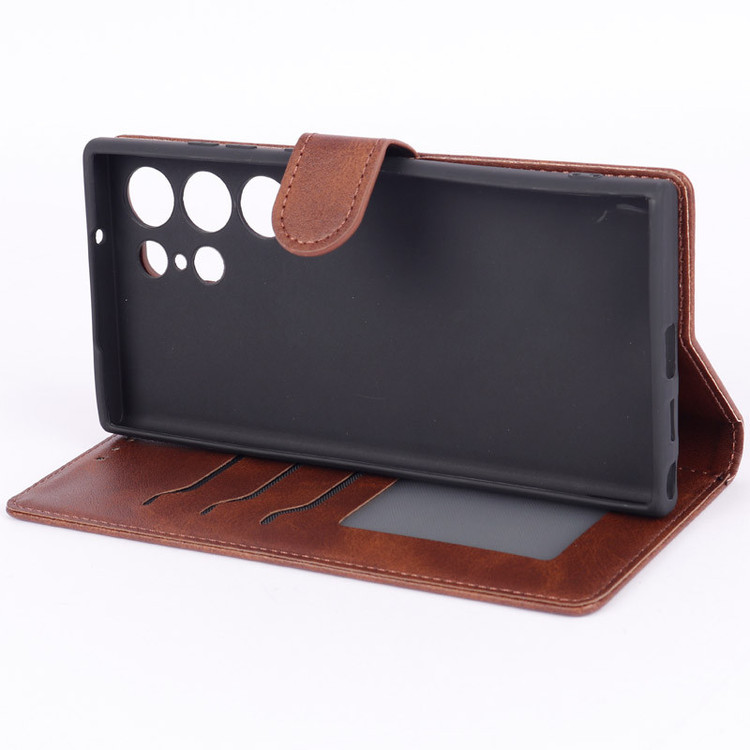 کیف گوشی سامسونگ Galaxy S22 ultra چرم مگنتی جاکارتی محافظ لنز دار بند آویز دار
