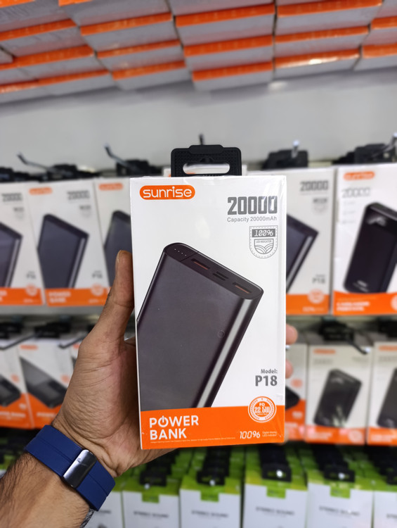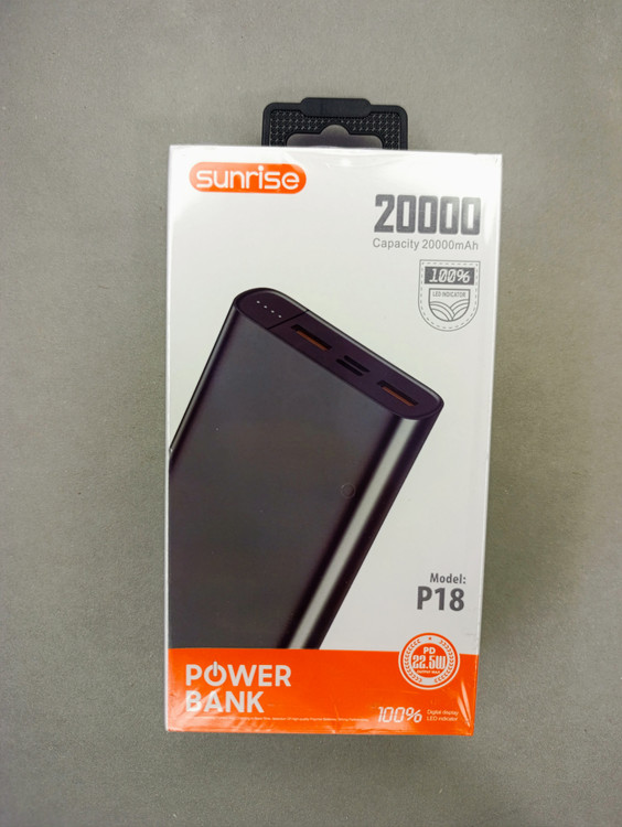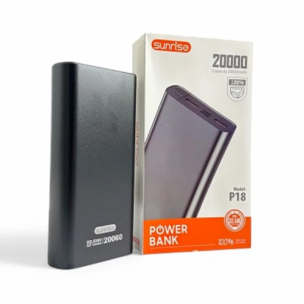 پاور بانک سانرایز مدل P18 دارای قابلیت فست شارژ همراه با کابل تایپ سی ظرفیت باتری 20000 میلی آمپر ساعت مناسب برای گوشی اندروید آیفون