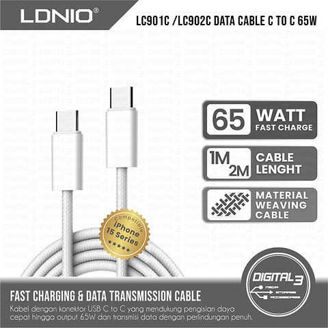 کابل Type-C به Type-C الدینیو Ldnio LC901C طول 1 متر توان 65 وات