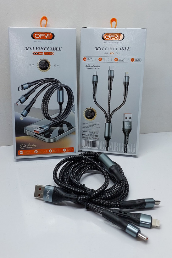 ♦️♦️ویژگیها:باخرید یک کابل فست شارژ OfYi دارای 3کابل میشوید که قابلیت شارژ هم زمان 3دستگاه میکرو ،لایتنینگ ،تایپ سی را دارد✔️