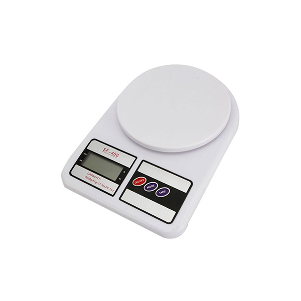 ترازو دیجیتال آشپزخانه مدل SF-400 با دقت اندازهگیری 1 گرم و ظرفیت 10 کیلوگرم، مناسب برای آشپزی، قنادی و مصارف خانگی. دارای نمایشگر LCD، قابلیت صفر کردن (Tare) و خاموشی خودکار.
