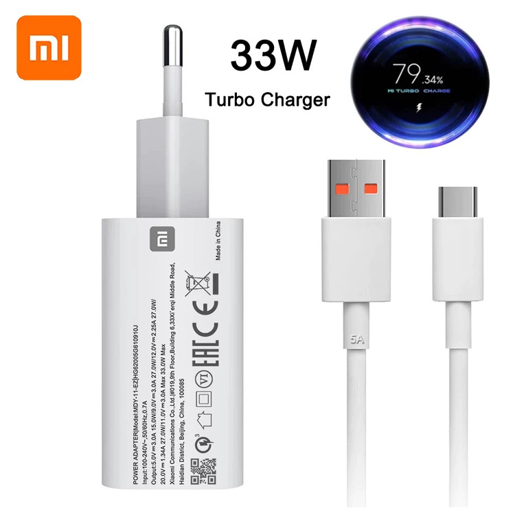 شارژر اورجینال کامل 33وات شیائومی با کابل شارژ و شش ماه گارانتی
