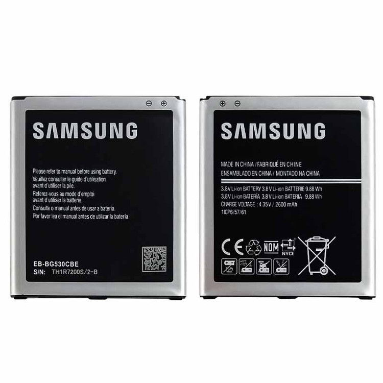 باطری بکاربرده شده در اکثر گوشی های شرکت سامسونگ از نوع لیتیوم یونی می باشند، این نوع باتری گوشی از کاتد اکسید فلزی که از عناصر نیکل، کبالت، منگنز و ترکیب آهن و همچنین آند متخلخل گرافیتی که بردارنده لیتیوم یون ها است و یک الکترولیت نمک لیتیوم تشکیل شده است.