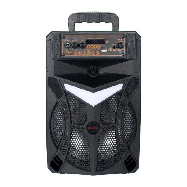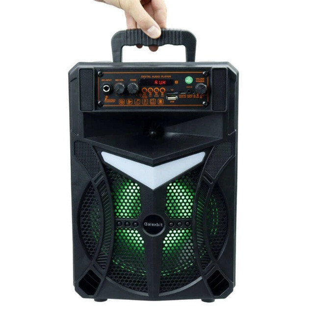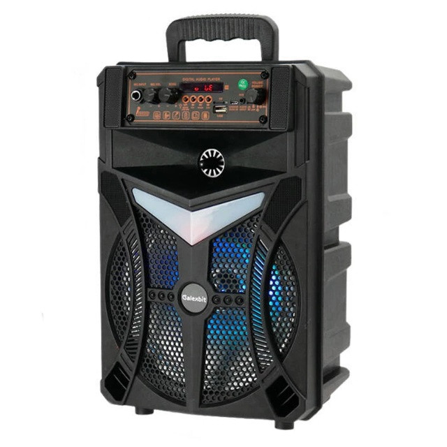 پشتیبانی از رادیو FM، بدنه ساخته شده از پلاستیک باکیفیت مرغوب ، دارای نمایشگر LED و نورپردازی داخلی زیبا و کنترل کوچک از راه دور ، میکروفون سیمی تامین انرژی اسپیکر توسط باتری لیتیوم یونی داخلی با میزان شارژدهی ۳ ساعت و ظرفیت باتری ۱۸۰۰ میلی آمپر ساعت و توان خروجی کلی ۱۰ وات مجهز به کلید های فیزیکی جهت مدیریت موسیقی و صدا و همچنین جهت کم و زیاد کردن ولوم میکروفون و اکو و خاموش و روشن کردن دستگاه و … دارای درایو به قطر ۸ اینچ با برد کامل، ورودی میکروفن برای اتصال میکروفن و همخوانی (حالت کارائوکه) با آهنگ در حال پخش اتصال با سیم از طریق رابط جک ۳٫۵ میلی متری صدا و اتصال بی سیم از بلوتوث نسخه ۵ با برد ۱۰ متر