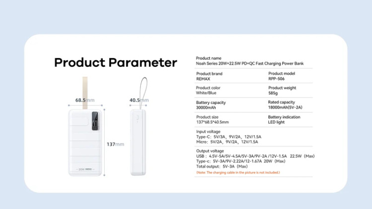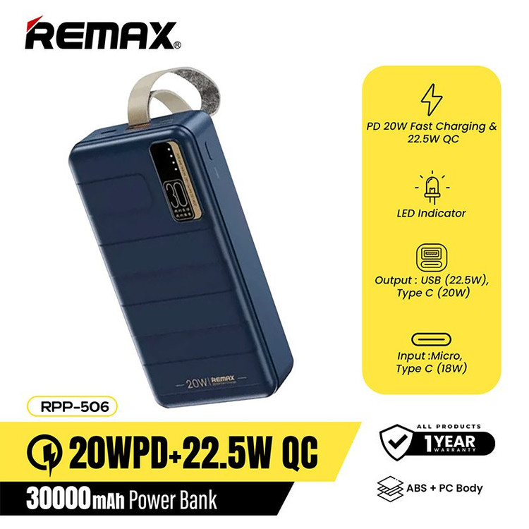پاوربانک ریمکس مدل RPP-506 ظرفیت 30000 میلی آمپر ساعت✅