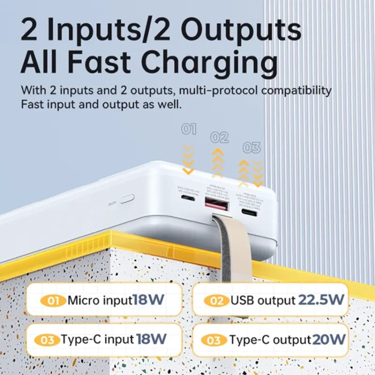 خروجی ۲ USB: پشتیبانی از ۴.۵V/۵A و ۵V/۴.۵A و ۵V/۳A و ۹V/۲A و ۱۲V/۱.۵A USB برابر با ۲۲.۵ وات✅