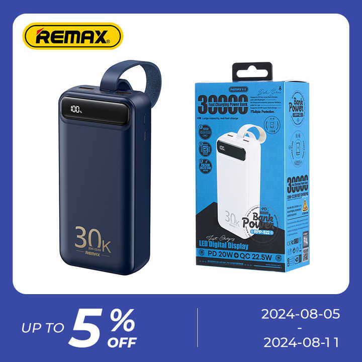 پاوربانک ریمکس مدل RPP-522 ظرفیت 30000 میلی آمپر ساعت✅